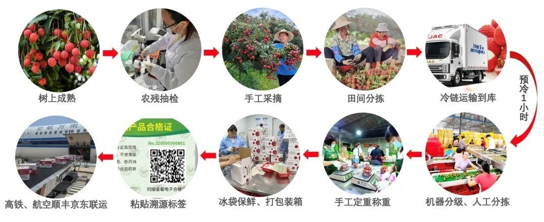 依托原有1426平方米冷库,扩建新增390平方米生鲜冷链配送中心,采用“产地直采+专业冷链”运输模式,有效延长荔枝保鲜周期,确保省内外消费者能购买到新鲜优质的增城荔枝。
